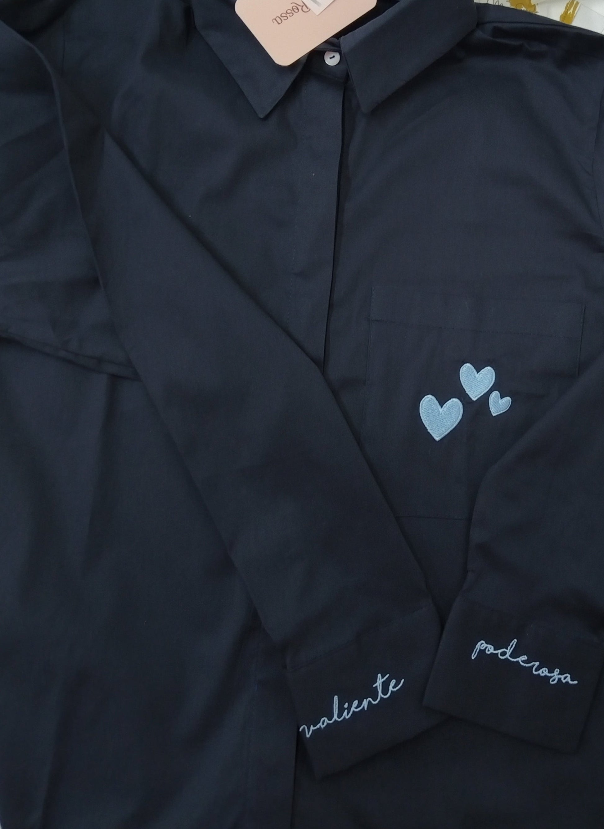 Camisa para mujer elaborada en algodón camisero. Corazones y texto bordados.